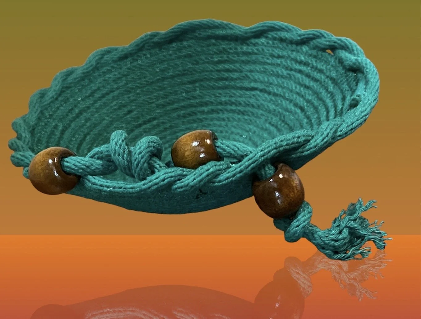 Rope art shown is created, designed, and hand made by Alice. Quality products are used and each item is unique and one of a kind. Each piece for sale will have a detailed description, photos, and measurements where possible. (Measurements may be approximate.) The cork used is a